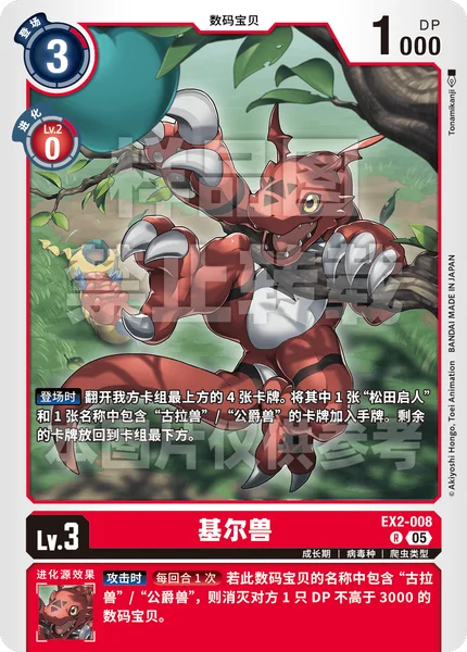 On Play Reveal the top 4 cards of your deck. Add 1 card with [Growlmon] or [Gallantmon] in its name and 1 [Takato Matsuki] among them to your hand. Place the remaining cards at the bottom of your deck in any order.