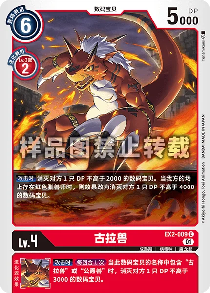 When Attacking Delete 1 of your opponent's Digimon with 2000 DP or less. If you have a red Tamer in play, delete 1 of your opponent's Digimon with 4000 DP or less instead.