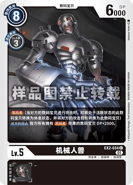 Blocker (When an opponent's Digimon attacks, you may suspend this Digimon to force the opponent to attack it instead.)Opponent's Turn All of your Digimon with Blocker get +2000 DP.