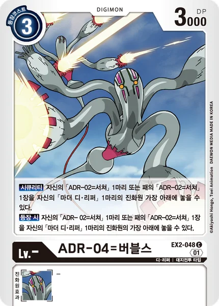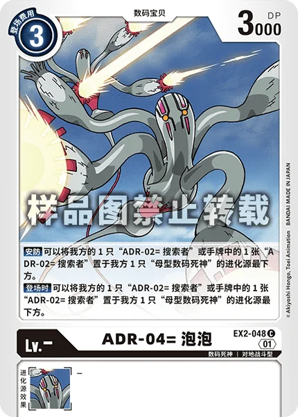 Security You may place 1 of your [ADR-02 Searcher]s from in play or from your hand under 1 of your [Mother D-Reaper]s as its bottom digivolution card.On Play You may place 1 of your [ADR-02 Searcher]s from in play or from your hand under 1 of your [Mother D-Reaper]s as its bottom digivolution card.