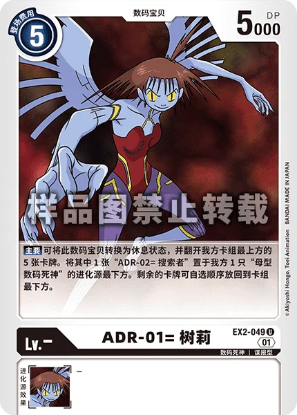 Main You may suspend this Digimon to reveal the top 5 cards of your deck. Place 1 [ADR-02 Searcher] among them under 1 of your [Mother D-Reaper]s as its bottom digivolution card. Place the remaining cards at the bottom of your deck in any order.