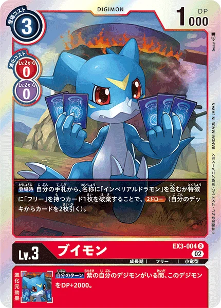 On Play By trashing 1 card with [Imperialdramon] in its name or [Free] in its traits in your hand, Draw 2. (Draw 2 cards from your deck.)