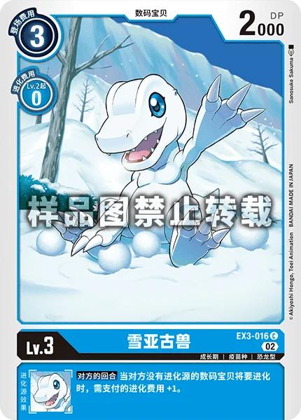 Opponent's Turn When an opponent's Digimon with no digivolution cards would digivolve, increase the digivolution cost by 1.