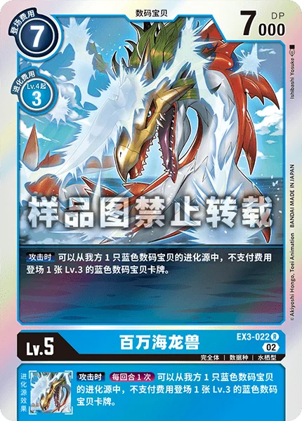 a1 blue level 3 Digimon card from 1 of your blue Digimon's digivolution cards without paying its memory cost.- Notes