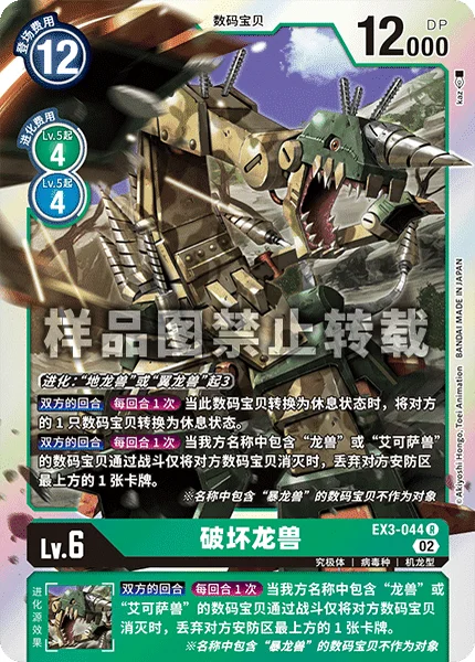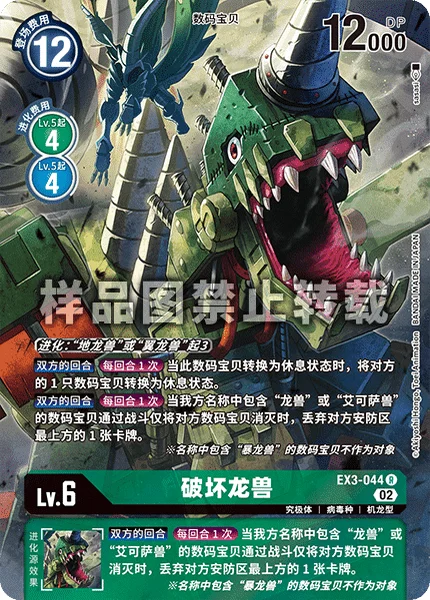 All TurnsOnce Per Turn When one of your Digimon with [Dramon] or [Examon] in its name deletes an opponent's Digimon in battle and survives, trash the top card of your opponent's security stack.