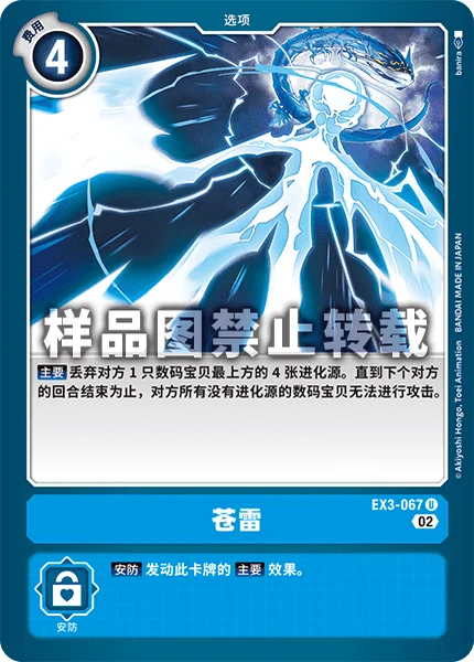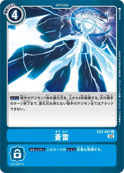 Main Trash the top 4 digivolution cards of 1 of your opponent's Digimon. Until the end of your opponent's turn, your opponent's Digimon with no digivolution cards can't attack.