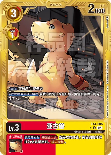 Your Turn Once Per Turn When one of your red or yellow Tamers becomes suspended, Draw 1. (Draw 1 card from your deck.)