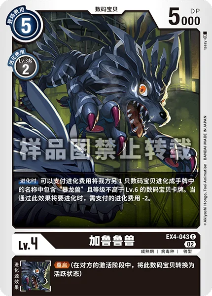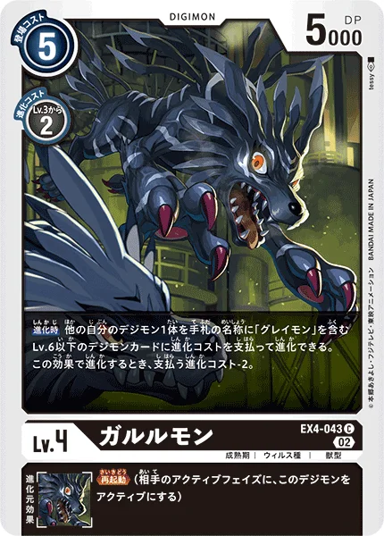 When Digivolving 1 of your other Digimon may digivolve into a level 6 or lower Digimon card with [Greymon] in its name in your hand for the digivolution cost. When that Digimon would digivolve by this effect, reduce the digivolution cost by 2.