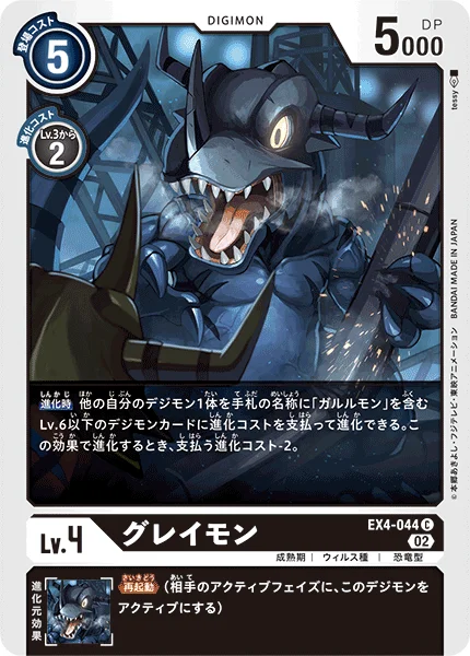 When Digivolving 1 of your other Digimon may digivolve into a level 6 or lower Digimon card with [Garurumon] in its name in your hand for the digivolution cost. When that Digimon would digivolve by this effect, reduce the digivolution cost by 2.