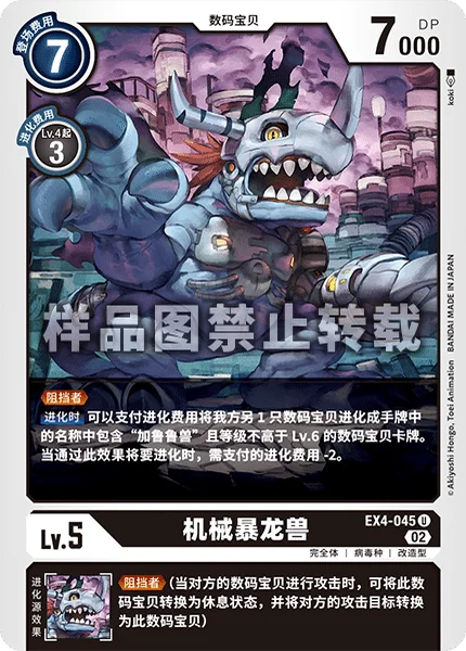 Blocker (When an opponent's Digimon attacks, you may suspend this Digimon to force the opponent to attack it instead.)