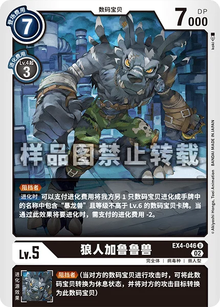 Blocker (When an opponent's Digimon attacks, you may suspend this Digimon to force the opponent to attack it instead.)