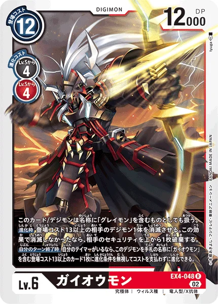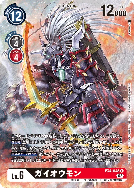 End of Your Turn If you have a Tamer in play, this Digimon may digivolve into 1 card with [Gaiomon] in its name and a play cost of 13 or more in your hand, ignoring its digivolution requirements and without paying the cost.