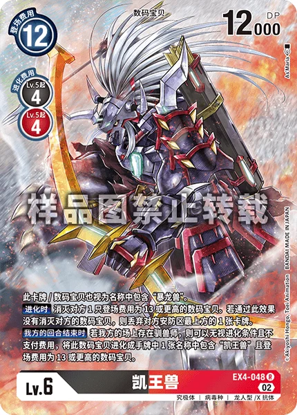 When Digivolving Delete 1 of your opponent's Digimon with a play cost of 13 or more. If no Digimon was deleted by this effect, trash the top card of your opponent's security stack.