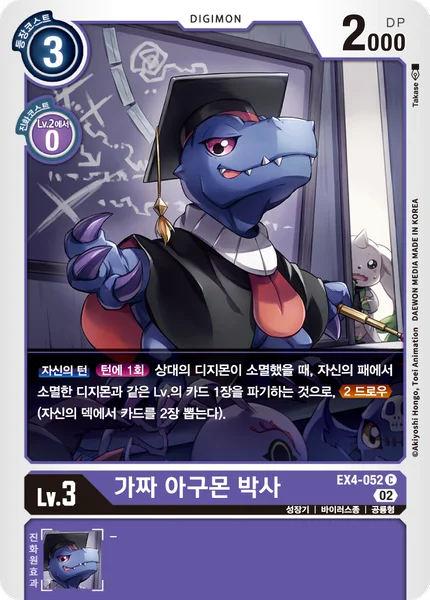 Your TurnOnce Per Turn When an opponent's Digimon is deleted, by trashing 1 card of the same level in your hand, Draw 2. (Draw 2 cards from your deck.)