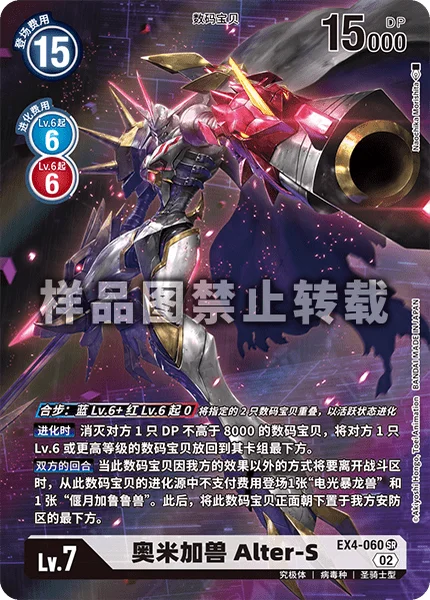 When Digivolving Delete 1 of your opponent's Digimon with 8000 DP or less, and return 1 of your opponent's level 6 or higher Digimon to the bottom of its owner's deck.