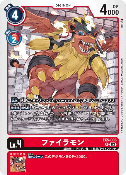 On PlayWhen Digivolving Reveal the top 3 cards of your deck. Add 1 card with the [Light Fang] trait and 1 card with the [Night Claw] or [Galaxy] trait among them to the hand. Return the rest to the bottom of the deck.