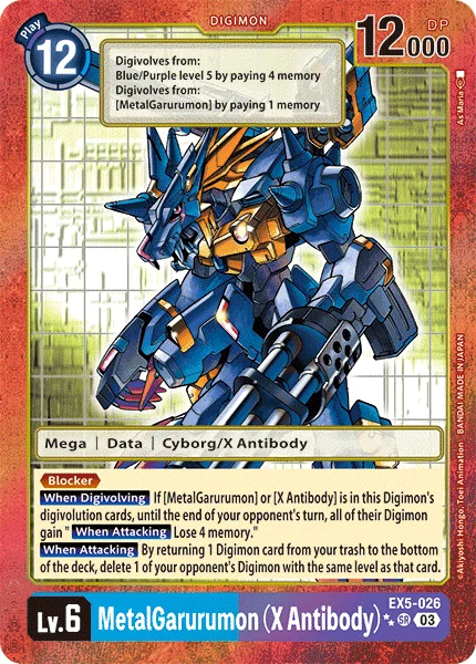 When Digivolving If [MetalGarurumon] or [X Antibody] is in this Digimon's digivolution cards, until the end of your opponent's turn, all of their Digimon gain "When Attacking Lose 4 memory."
