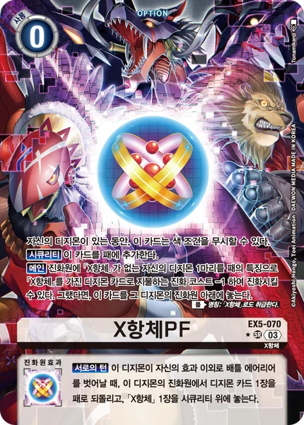 All Turns When this Digimon would leave the battle area other than by one of your effects, from this Digimon's digivolution cards, return 1 Digimon card to the hand and place 1 [X Antibody] on top of your security stack.