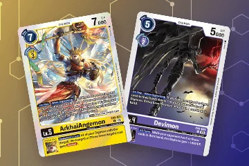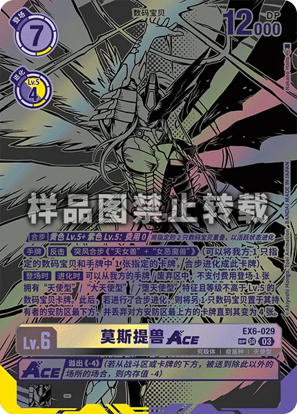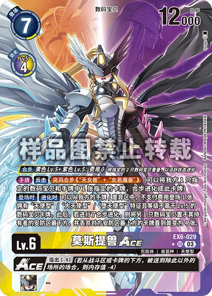 On Play When Digivolving You may play 1 level 5 or lower Digimon card with the [Angel], [Archangel] or [Fallen Angel] trait from your hand or trash without paying the cost. Then, if DNA digivolving, place 1 other Digimon at the bottom of its owner's security stack, and trash cards from the top of your opponent's security stack until it has 4 left.