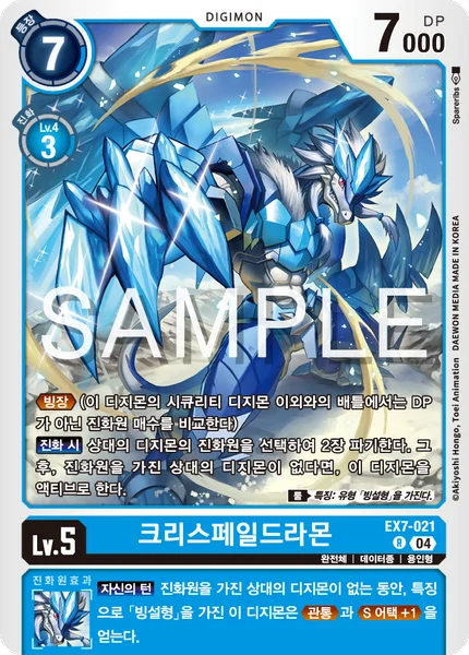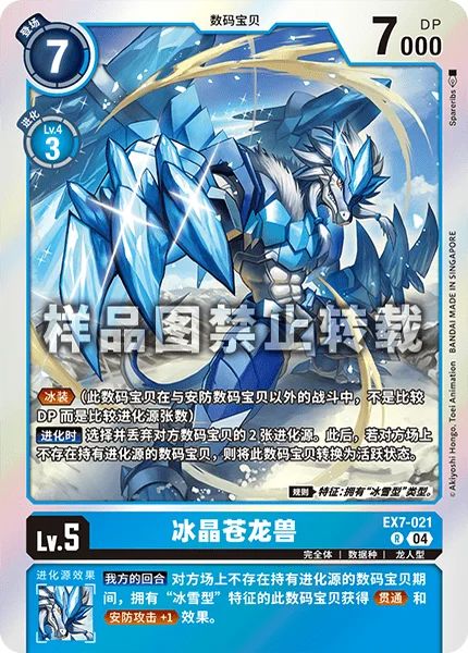 When Digivolving Trash any 2 digivolution cards under your opponent's Digimon. Then, if your opponent has no Digimon with digivolution cards, this Digimon unsuspends. Rule Trait: Has [Ice-Snow] Type.