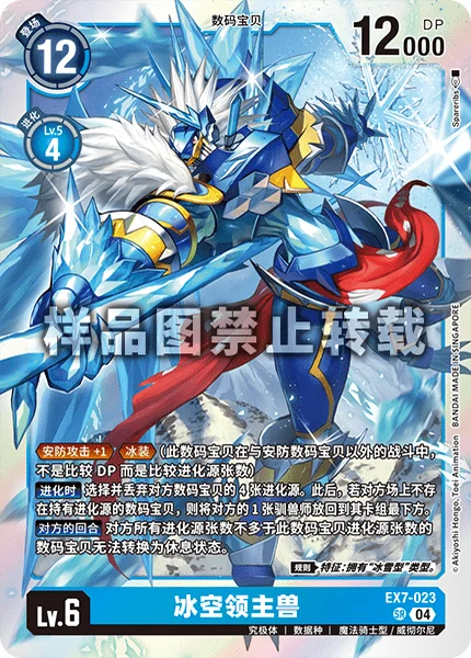 Opponent's Turn None of your opponent's Digimon with as many or fewer digivolution cards as this Digimon can suspend. Rule Trait: Has [Ice-Snow] Type.