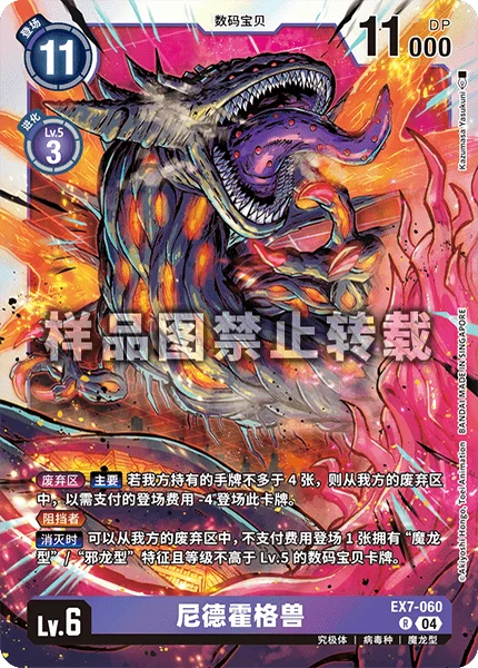 On Deletion You may play 1 level 5 or lower Digimon card with the [Dark Dragon] or [Evil Dragon] trait from your trash without paying the cost.
