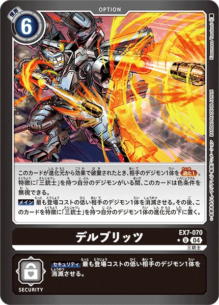 Security Delete 1 of your opponent's Digimon with the lowest play cost.