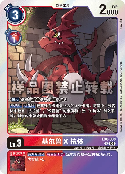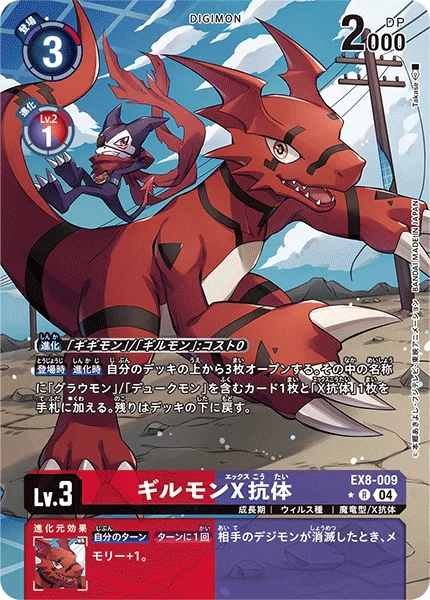 On Play When Digivolving Reveal the top 3 cards of your deck. Add 1 card with [Growlmon] or [Gallantmon] in its name and 1 [X Antibody] among them to the hand. Return the rest to the bottom of the deck.