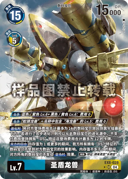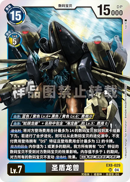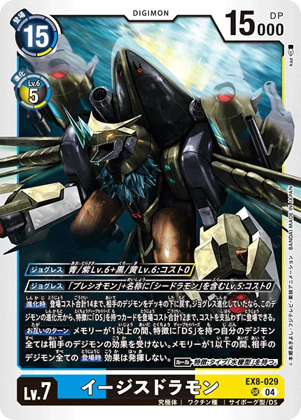 All Turns While you have 1 or more memory, none of your [DS] trait Digimon are affected by your opponent's Digimon's effects. While you have 1 or less, none of your opponent's Digimon can activate On Play effects. Rule Trait: Has [Aquatic] Type.