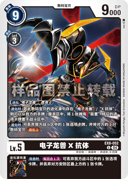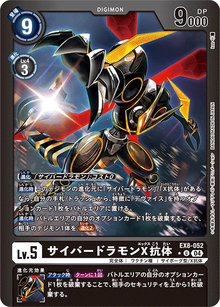 When Digivolving If [Cyberdramon] or [X Antibody] is in this Digimon's digivolution cards, you may place 1 Option card with the [Device] trait from your hand or trash in the battle area.