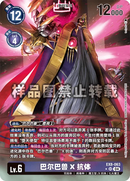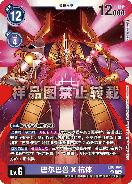 All Turns Once Per Turn When your opponent's hand is trashed from, if [Barbamon] or [X Antibody] is in this Digimon's digivolution cards, trash your opponent's top security card.