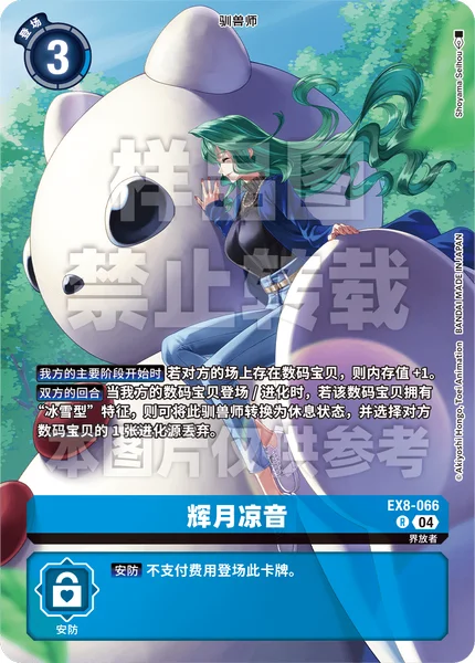 All Turns When your Digimon are played or digivolve, if any of them have the [Ice-Snow] trait, by suspending this Tamer, trash any 1 digivolution card from your opponent's Digimon.