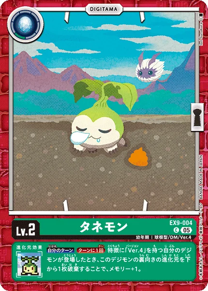 Your Turn Once Per Turn When any of your [Ver.4] trait Digimon are played, by trashing this Digimon's bottom face-down digivolution card, gain 1 memory.