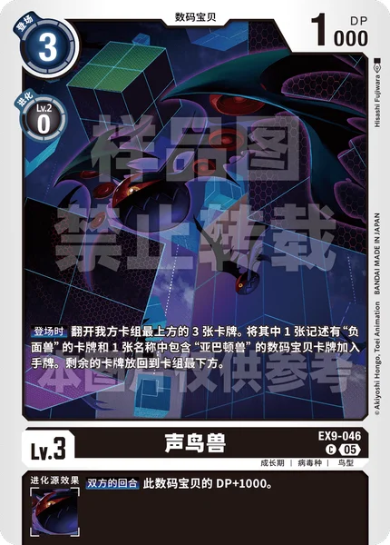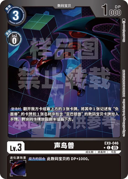 On Play Reveal the top 3 cards of your deck. Add 1 card with [Negamon] in its text and 1 Digimon card with [Abbadomon] in its name among them to the hand. Return the rest to the bottom of the deck.
