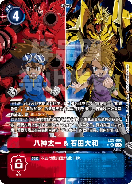 On Play You may return 1 Digimon card with [Greymon], [Garurumon] or [Omnimon] in its name from your trash to the hand. If this effect didn't return, Draw 1. All Turns When any of your Digimon are played or digivolve, by suspending this Tamer, gain 1 memory if you have a Digimon with [Greymon] in its name. Then, gain 1 memory if you have a Digimon with [Garurumon] in its name.