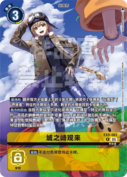 Your Turn When any of your Digimon digivolve into a [Puppet] trait Digimon, by returning this Tamer to the bottom of the deck, you may play 1 [Arisa Kinosaki] or 1 [Puppet] trait Digimon card from your hand with the play cost reduced by 3.
