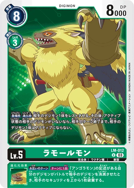 All Turns Once Per Turn When one of your Digimon with [Angoramon] in their texts deletes an opponent's Digimon in battle, trash the top card of their security stack.