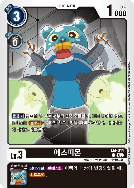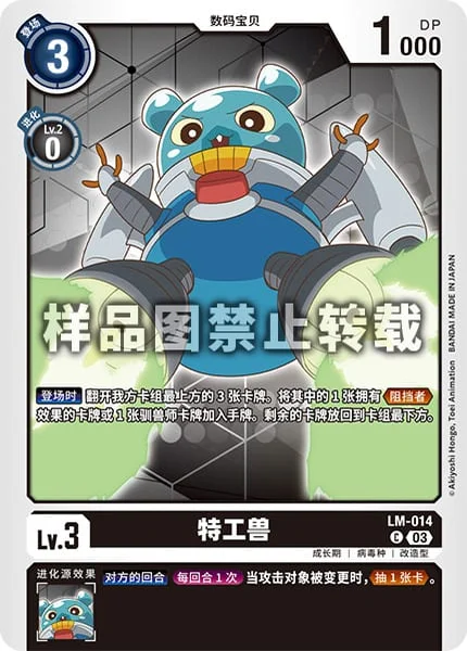 On Play Reveal the top 3 cards of your deck. Add 1 card with Blocker or 1 Tamer card among them to the hand. Return the rest to the bottom of the deck.