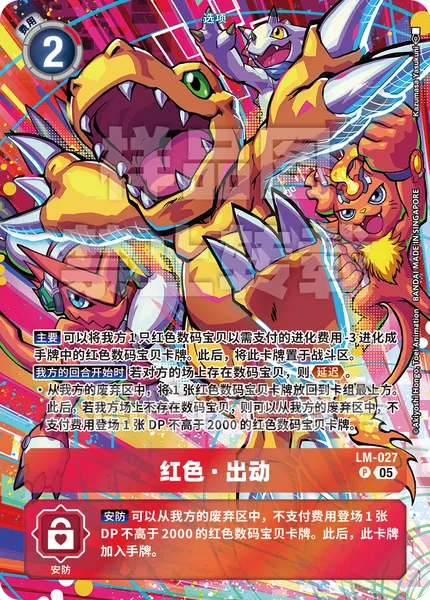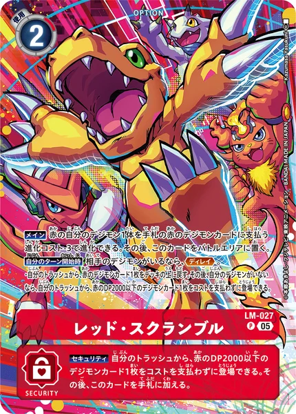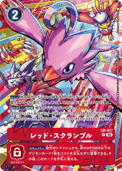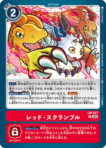 Security You may play 1 red Digimon card with 2000 DP or less from your trash without paying the cost. Then, add this card to the hand.