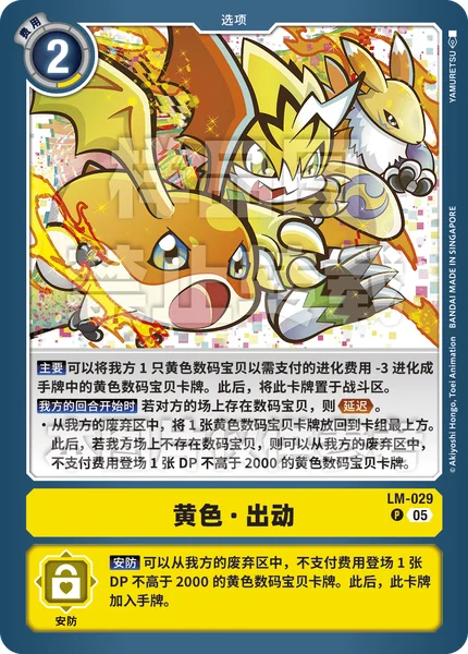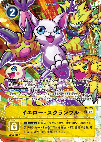 Security You may play 1 yellow Digimon card with 2000 DP or less from your trash without paying the cost. Then, add this card to the hand.