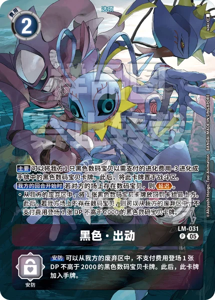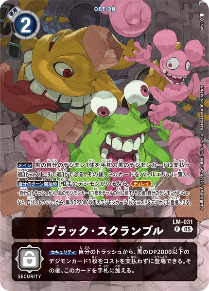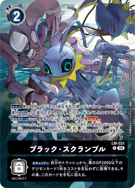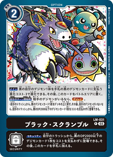 Security You may play 1 black Digimon card with 2000 DP or less from your trash without paying the cost. Then, add this card to the hand.