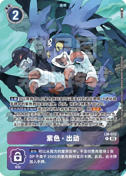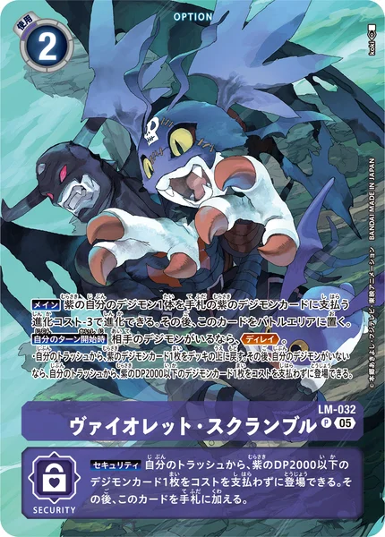 Security You may play 1 purple Digimon card with 2000 DP or less from your trash without paying the cost. Then, add this card to the hand.