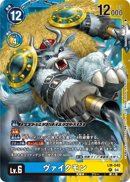 When Attacking Once Per Turn If your opponent has no Digimon with as many or more digivolution cards as this Digimon, it unsuspends. Then, all of your opponent's Security Digimon get -6000 DP for the turn. Rule Trait: Has [Sea Beast] Type.