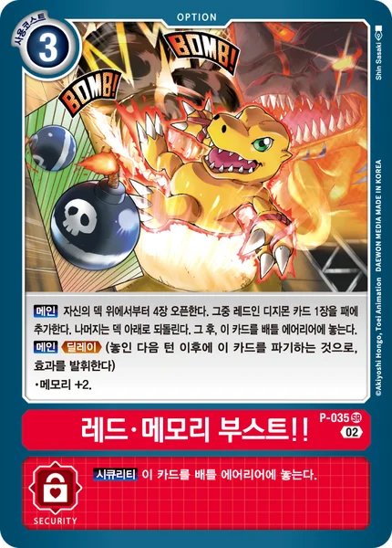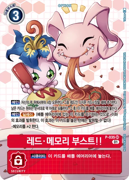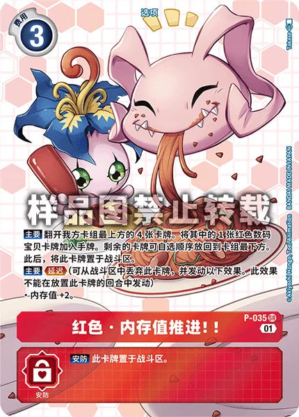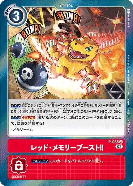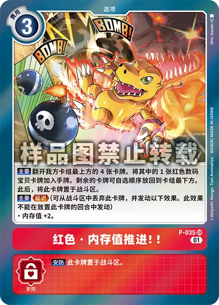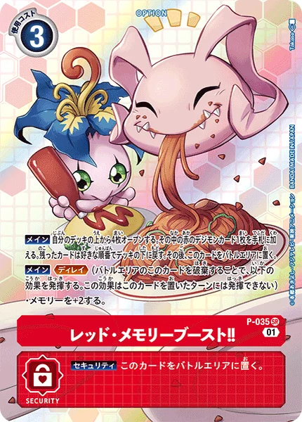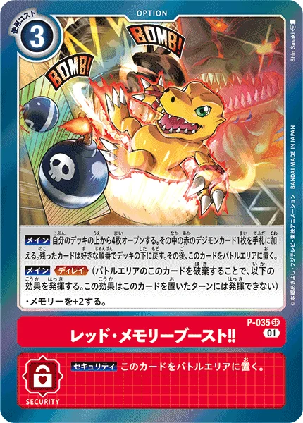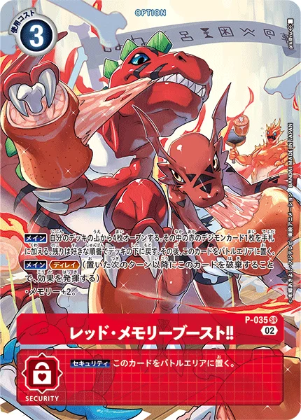 Main Reveal the top 4 cards of your deck. Add 1 red Digimon card among them to the hand. Return the rest to the bottom of the deck. Then, place this card in the battle area.