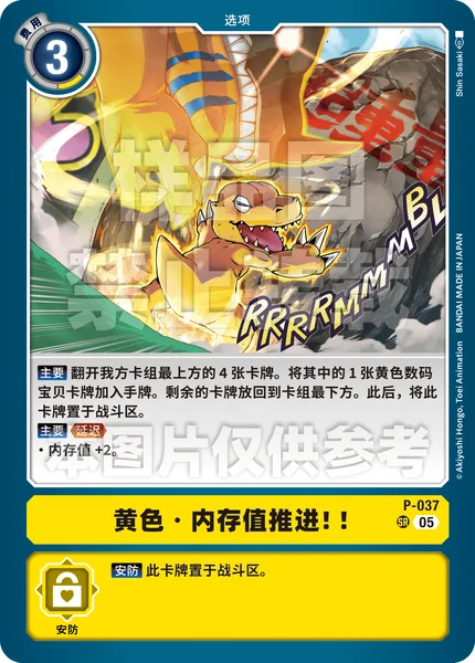 Main Reveal the top 4 cards of your deck. Add 1 yellow Digimon card among them to the hand. Return the rest to the bottom of the deck. Then, place this card in the battle area.