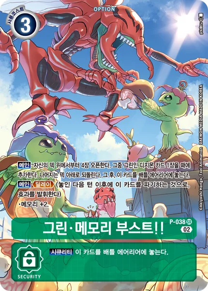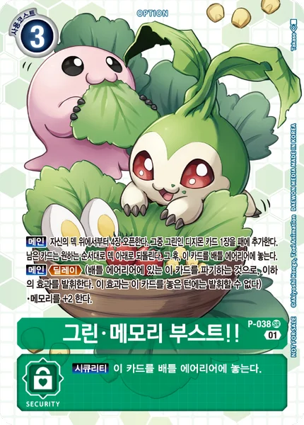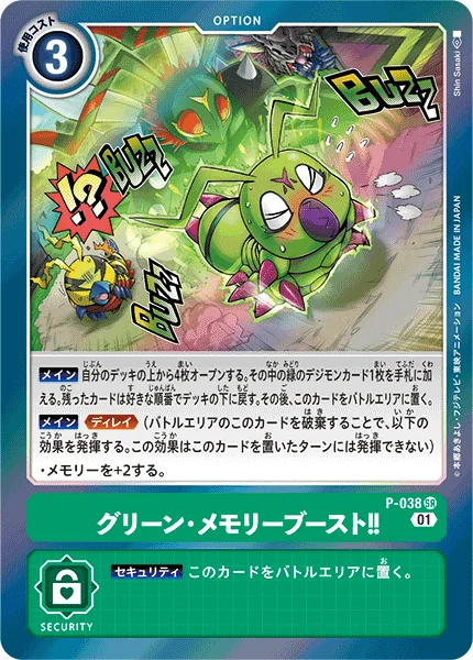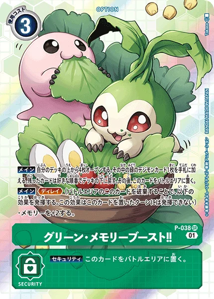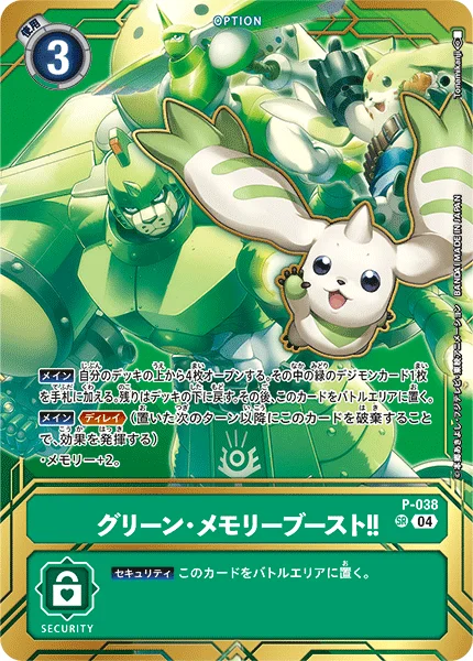 Main Reveal the top 4 cards of your deck. Add 1 green Digimon card among them to the hand. Return the rest to the bottom of the deck. Then, place this card in the battle area.