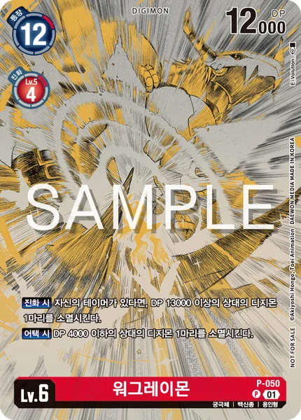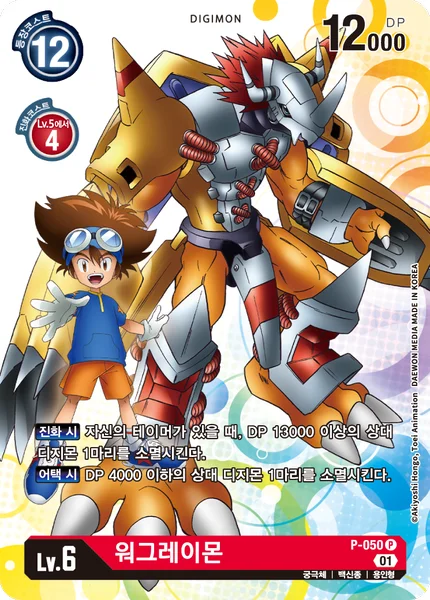 When Digivolving If you have a Tamer in play, delete 1 of your opponent's Digimon with 13000 DP or more. When Attacking Delete 1 of your opponent's Digimon with 4000 DP or less.