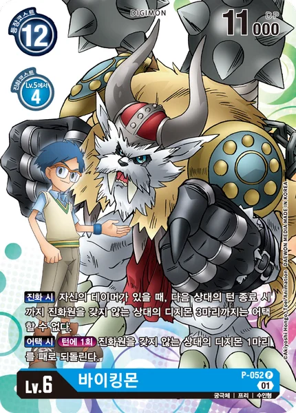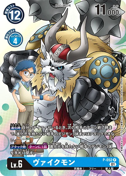 When Digivolving If you have a Tamer in play, up to 3 of your opponent's Digimon with no digivolution cards can't attack until the end of your opponent's next turn. When AttackingOnce Per Turn Return 1 of your opponent's Digimon with no digivolution cards to its owner's hand.