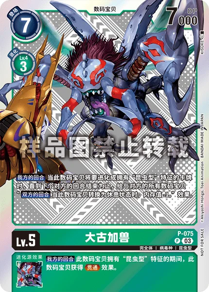 Your Turn When this Digimon would digivolve into a card with [Insectoid] in its traits, all of your opponent's Digimon gain “All Turns When this Digimon becomes suspended, lose 1 memory.” until the end of your opponent's turn.