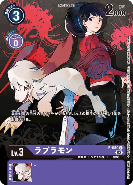 On Play If you have a purple Tamer, delete 1 of your opponent's level 3 Digimon.